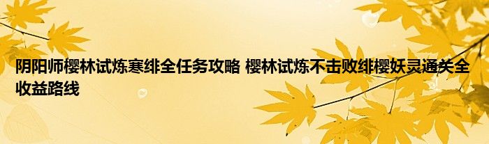 《阴阳师》樱林试炼寒绯全成就达成攻略