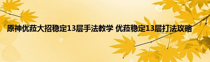 原神中优菈是一位五星冰系损害的角色,输出还是很爆炸的,用来打深渊也挺好用的,不过很多玩家不会玩,小编这里带来一套大招流稳定13层的打法攻略教学,可以帮助玩家来理解优菈到底要怎么操作,一些细节的把控比别人好,就能玩的比别人更好。