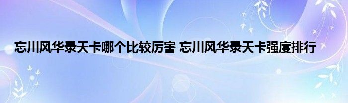 忘川风华录天卡哪个比较厉害?忘川风华录这款游戏已经正式开启了公测,在公测之初游戏就被分为天卡和地卡两种,这两种也有不同的强度。天卡作为游戏里最稀有的卡,强度自然也是最高的,不过具体的天卡里,什么天卡比较厉害呢?下面就一起来看看吧。