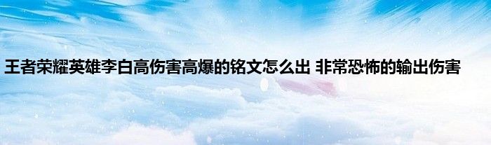 今天来聊聊关于王者荣耀英雄李白高伤害高爆的铭文怎么出 非常恐怖的输出伤害的文章,游戏是很多人的选择,但是游戏玩多了也会身心疲惫,现在就为大家来简单介绍下王者荣耀英雄李白高伤害高爆的铭文怎么出 非常恐怖的输出伤害,希望对各位小伙伴们有所帮助。
