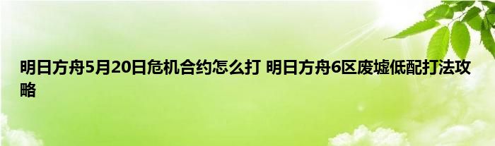 明日方舟6区废墟怎么打?明日方舟5月20日开启了新的危机合约地图,这次的地图是6区废墟。新的危机合约总体打法还是比较困难的,这里就带来了具体的低配打法攻略,如果大家没有通关的话,就来看看具体的攻略吧。