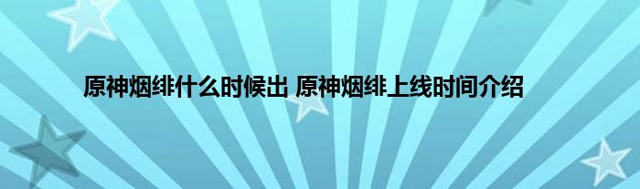 原神即将出的新角色中,有一位超可爱的火系法师——烟绯。很多小伙伴都想知道这个新老婆什么时候上线呢,今天小编带来了烟绯上线的具体情报,感兴趣的可以看看哦~