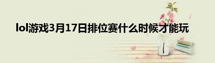 以上就是lol游戏3月17日排位赛什么时候才能玩的推荐,相信通过lol游戏3月17日排位赛什么时候才能玩这篇文章能帮到你,也欢迎对游戏很感兴趣小伙伴们一起来探讨。