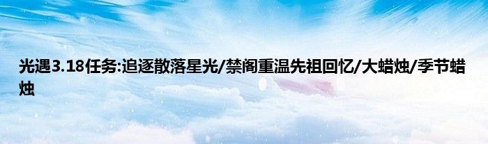 很多玩家都不知道光遇3.18任务怎么完成?也不知道这个大蜡烛的位置,那么今天就让蚕豆君来给大家讲一下光遇3月18日任务怎么完成吧攻