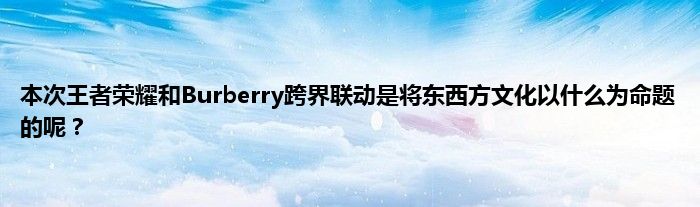 昨日推文中提到的,本次王者荣耀和Burberry跨界联动,是将东西方文化以____为命题的呢?(答案为两个字)