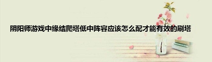 今天弟哥来聊聊一篇关于阴阳师游戏中缘结爬塔低中阵容应该怎么配才能有效的刷塔的文章,游戏是很多人的选择,但是游戏玩多了也会身心疲惫,现在就为大家来简单介绍下阴阳师游戏中缘结爬塔低中阵容应该怎么配才能有效的刷塔,希望对各位小伙伴们有所帮助。