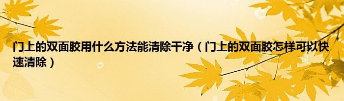 大家好,小科来为大家解答以上问题。门上的双面胶用什么方法能清除干净,门上的双面胶怎样可以快速清除很多人还不知道,现在让我们一起来看看吧!
