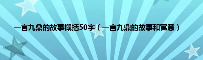 大家好,小科来为大家解答以上问题。一言九鼎的故事概括50字,一言九鼎的故事和寓意很多人还不知道,现在让我们一起来看看吧!