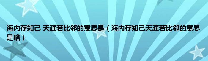 1、 海内存知已与天为邻的意思是:天下有知音,即使相距遥远,也是近邻。《送杜少府之任蜀州/送杜少府之任蜀川》唐代王波所作