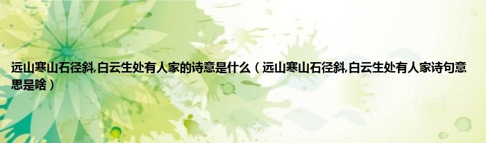 大家好,小科来为大家解答以上问题。远山寒山石径斜,白云生处有人家的诗意是什么,远山寒山石径斜,白云生处有人家诗句意思是啥很多人还不知道,现在让我们一起来看看吧!