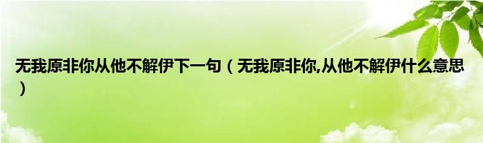 大家好,小科来为大家解答以上问题。无我原非你从他不解伊下一句,无我原非你,从他不解伊什么意思很多人还不知道,现在让我们一起来看看吧!