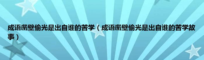 大家好,小科来为大家解答以上问题。成语凿壁偷光是出自谁的苦学,成语凿壁偷光是出自谁的苦学故事很多人还不知道,现在让我们一起来看看吧!