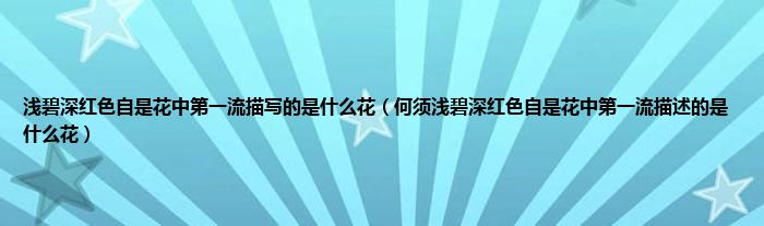 大家好,小科来为大家解答以上问题。浅碧深红色自是花中第一流描写的是什么花,何须浅碧深红色自是花中第一流描述的是什么花很多人还不知道,现在让我们一起来看看吧!