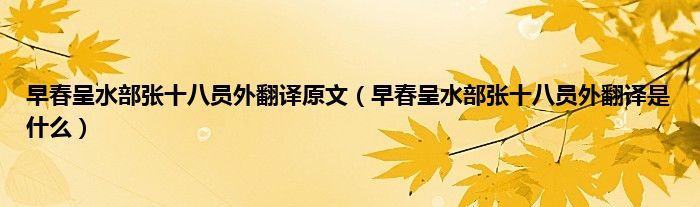 1、 《早春呈水部张十八员外》一般指《早春呈水部张十八员外二首》。