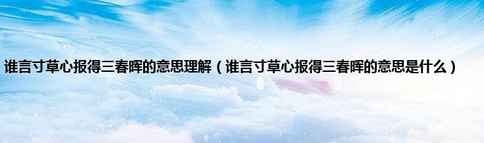 大家好,小科来为大家解答以上问题。谁言寸草心报得三春晖的意思理解,谁言寸草心报得三春晖的意思是什么很多人还不知道,现在让我们一起来看看吧!