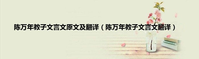 大家好,小科来为大家解答以上问题。陈万年教子文言文原文及翻译,陈万年教子文言文翻译很多人还不知道,现在让我们一起来看看吧!