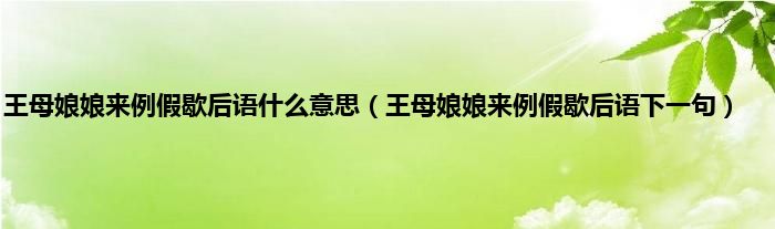 大家好,小科来为大家解答以上问题。王母娘娘来例假歇后语什么意思,王母娘娘来例假歇后语下一句很多人还不知道,现在让我们一起来看看吧!