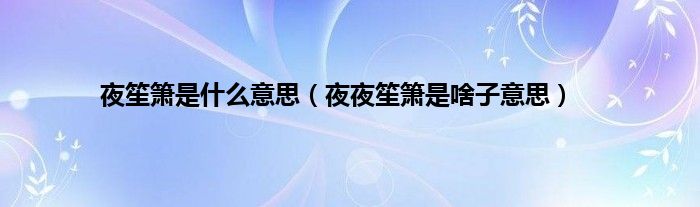 大家好,小科来为大家解答以上问题。夜笙箫是什么意思,夜夜笙箫是啥子意思很多人还不知道,现在让我们一起来看看吧!