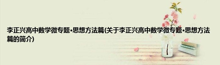 本文关于李正兴高中数学微专题·思想方法篇的简介就讲解完毕,希望对大家有所帮助。