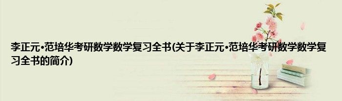 本文关于李正元·范培华考研数学数学复习全书的简介就讲解完毕,希望对大家有所帮助。
