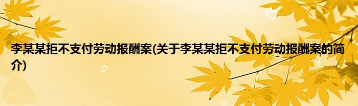 本文关于李某某拒不支付劳动报酬案的简介就讲解完毕,希望对大家有所帮助。
