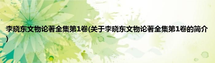 大家好,李晓东文物论著全集第1卷,关于李晓东文物论著全集第1卷的简介很多人还不知道,现在让我们一起来看看吧!