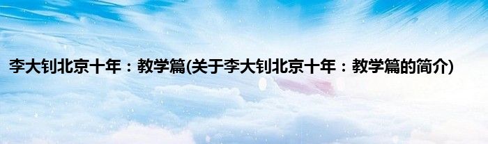 本文关于李大钊北京十年:教学篇的简介就讲解完毕,希望对大家有所帮助。