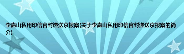 本文关于李嘉山私用印信官封递送京报案的简介就讲解完毕,希望对大家有所帮助。