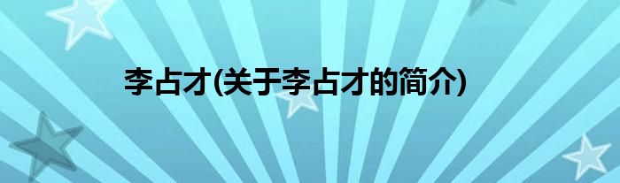 大家好,李占才,关于李占才的简介很多人还不知道,现在让我们一起来看看吧!