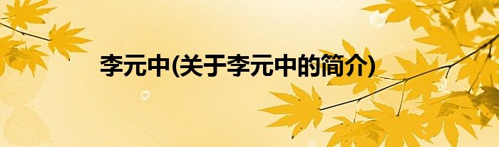 本文关于李元中的简介就讲解完毕,希望对大家有所帮助。