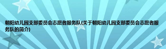朝阳幼儿园支部委员会志愿者服务队(关于朝阳幼儿园支部委员会志愿者服务队的简介)