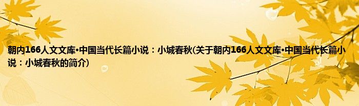 大家好,朝内166人文文库·中国当代长篇小说:小城春秋,关于朝内166人文文库·中国当代长篇小说:小城春秋的简介很多人还不知道,现在让我们一起来看看吧!