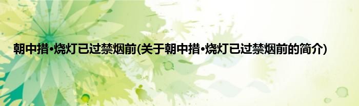 本文关于朝中措·烧灯已过禁烟前的简介就讲解完毕,希望对大家有所帮助。