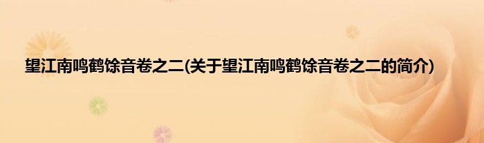 本文关于望江南鸣鹤馀音卷之二的简介就讲解完毕,希望对大家有所帮助。
