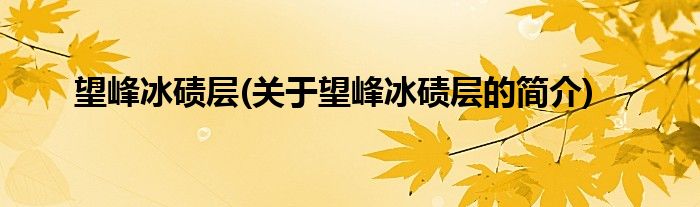 1、 望峰冰碛层是岩石地层名称。