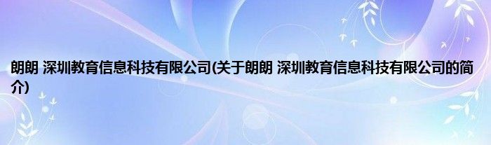 本文关于朗朗 深圳教育信息科技有限公司的简介就讲解完毕,希望对大家有所帮助。