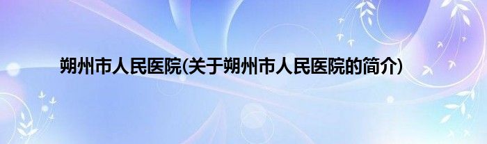 大家好,朔州市人民医院,关于朔州市人民医院的简介很多人还不知道,现在让我们一起来看看吧!