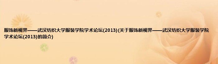 本文关于服饰新视界——武汉纺织大学服装学院学术论坛(2013)的简介就讲解完毕,希望对大家有所帮助。