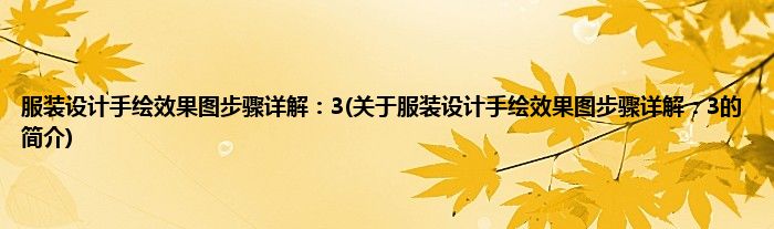 服装设计手绘效果图步骤详解:3(关于服装设计手绘效果图步骤详解:3的简介)