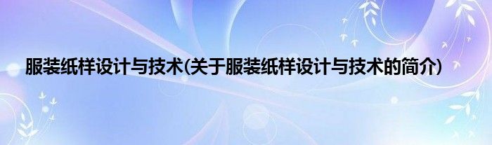 大家好,服装纸样设计与技术,关于服装纸样设计与技术的简介很多人还不知道,现在让我们一起来看看吧!