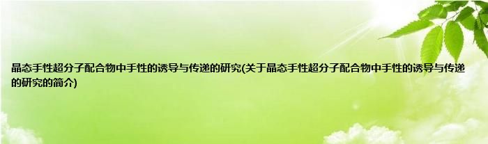 晶态手性超分子配合物中手性的诱导与传递的研究(关于晶态手性超分子配合物中手性的诱导与传递的研究的简介)