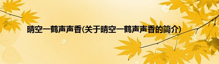 本文关于晴空一鹤声声香的简介就讲解完毕,希望对大家有所帮助。
