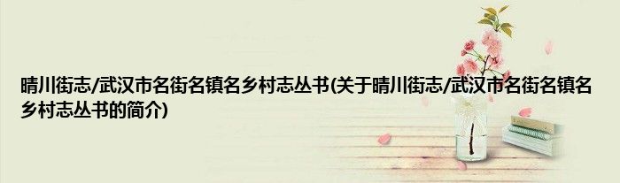 本文关于晴川街志/武汉市名街名镇名乡村志丛书的简介就讲解完毕,希望对大家有所帮助。