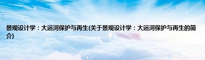 本文关于景观设计学:大运河保护与再生的简介就讲解完毕,希望对大家有所帮助。