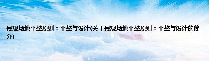 景观场地平整原则:平整与设计(关于景观场地平整原则:平整与设计的简介)