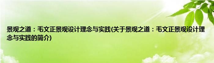 本文关于景观之道:毛文正景观设计理念与实践的简介就讲解完毕,希望对大家有所帮助。