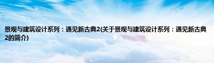 大家好,景观与建筑设计系列:遇见新古典2,关于景观与建筑设计系列:遇见新古典2的简介很多人还不知道,现在让我们一起来看看吧!