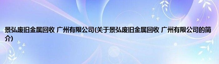 本文关于景弘废旧金属回收 广州有限公司的简介就讲解完毕,希望对大家有所帮助。