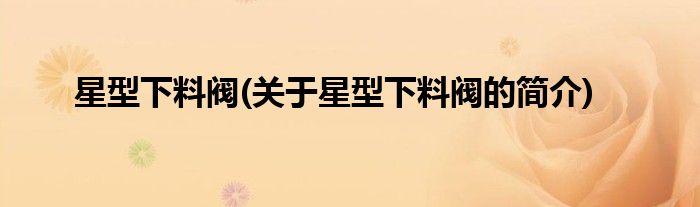 本文关于星型下料阀的简介就讲解完毕,希望对大家有所帮助。