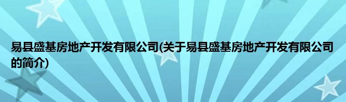 本文关于易县盛基房地产开发有限公司的简介就讲解完毕,希望对大家有所帮助。